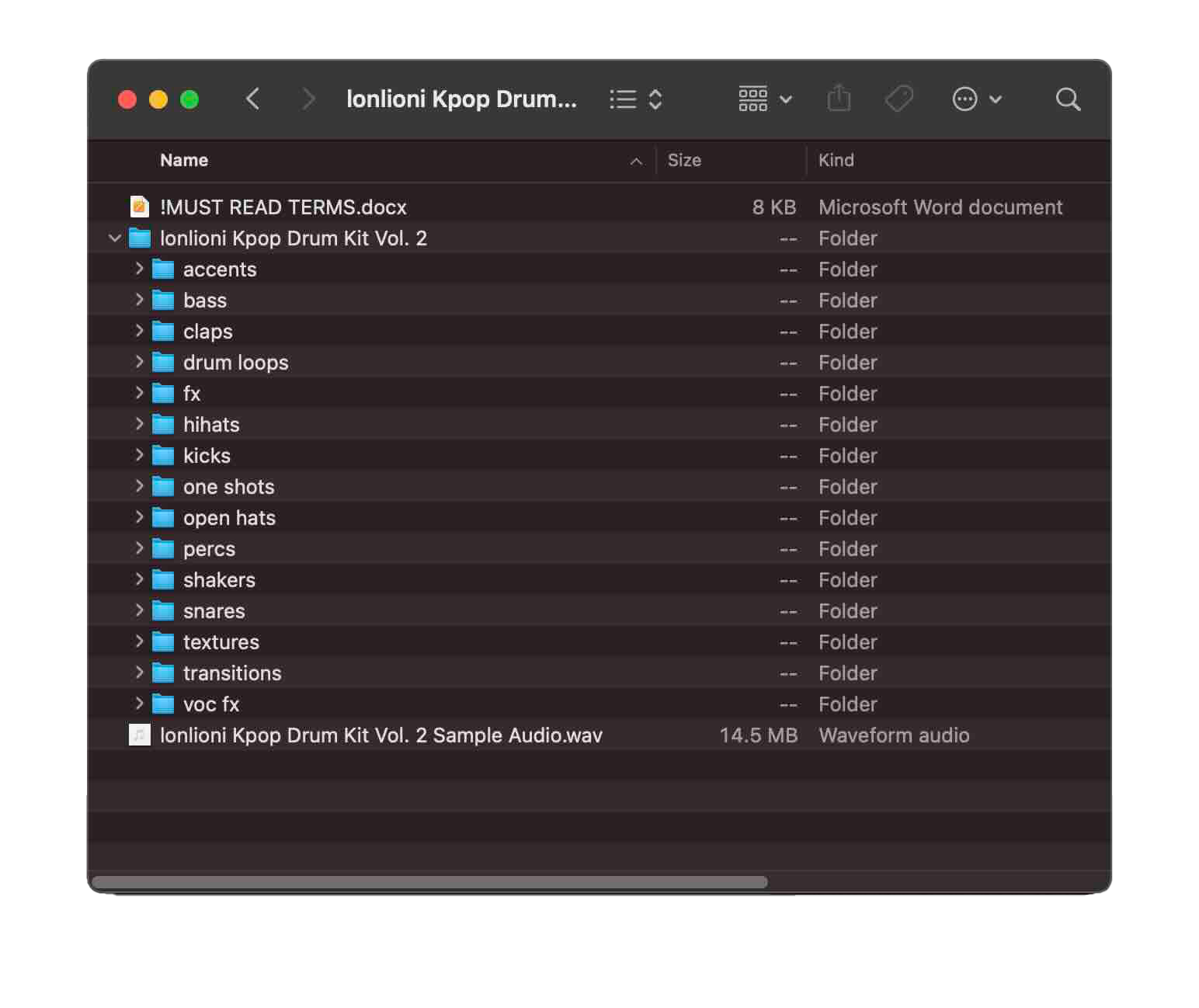 Take your beats to new heights with the lonlioni Kpop Drum Kit Vol. 2! This kit includes a massive variety of drum sounds inspired by artists like aespa, LE SSERAFIM, Blackpink, ILLIT, NewJeans, YOUNG POSSE etc. It has over 1,000 files to sauce up your beats and hundreds of one shot instrument samples so you can find the perfect sound for your track.