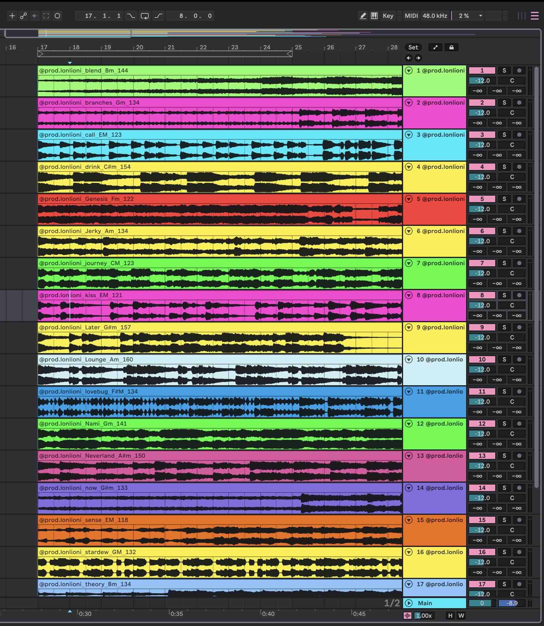 - Tempo and Key of each loop labeled