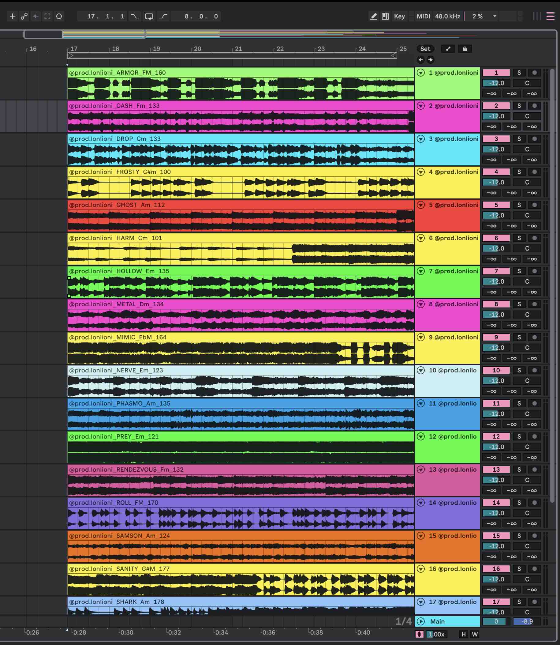 - Tempo and Key of each loop labeled